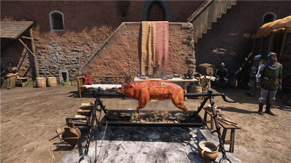 在饮食机制设定里,各类食材不仅获取途径存在差异,还具备清晰的营养属性划分。黑麦面包价格亲民且极易获得,不过仅能提供基础的饱腹感;烤野猪肉需要通过打猎获取食材后再生火烹制,它所含的蛋白质能够快速帮助恢复体力,但由于脂肪含量较高,要是长期只吃这一种食物,就会造成消化方面的不适;蜂蜜蛋糕和炖肉汤这类食物则同时具备营养与良好的口感,既能改善身体状态,还能带来短暂的属性加成,不过它们的获取难度和成本要比普通食物高出不少。更细致的设定是,食物的状态会随着时间推移而发生真实的改变,比如新鲜的肉类要是没有及时食用或者进行腌制处理,就会不断腐坏,食用了腐坏的肉类后,会引发呕吐、体力下降等负面状况。这就要求玩家不仅要考虑日常食物的获取问题,还得对食物的储存进行合理规划。