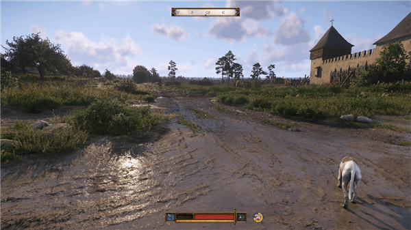 动态光影系统的进化,则让游戏的场景宛如一幅幅写实的中世纪油画。特洛斯基堡垒的石墙并非均匀的灰色块,而是由大小不一的灰岩垒砌,部分墙段还因常年雨水冲刷,砂浆呈现自然剥落的层次感。清晨波西米亚乡村的薄雾会先笼罩河谷,朝阳穿透雾层时形成丁达尔效应,光线在草叶的露珠上折射出细碎光斑,搭配村民被拉长的身影,让整个画面与游戏考据的中世纪手抄本的插画内容高度契合,形成了完美呼应。