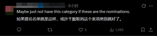 也有部分玩家觉得所有获得提名的作品质量都不高,不过是在“矮子里挑高个”罢了。