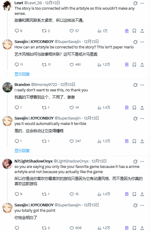 这条博文很快就成了玩家们争论的核心话题。不少网友对这个假设表现出了强烈的反对乃至鄙夷的情绪,他们觉得这款作品能成功,恰恰是因为它没有采用那种常见的JRPG画风。