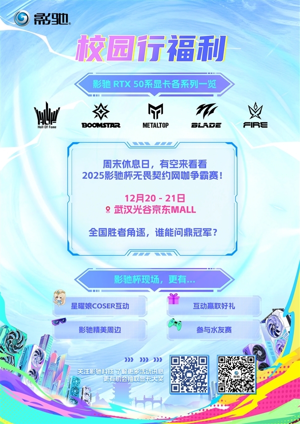 校园行还没玩够?12月20日到21日,2025影驰杯电竞网咖争霸赛接棒来袭,在武汉光谷京东MALL精彩开启!