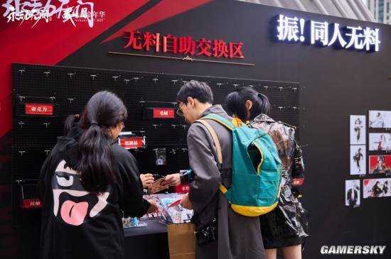 除了官方周边贩售区人气火爆之外,本次活动里的同人无料展示区,也成了不少创作者和粉丝眼中的宝藏角落。许多玩家在现场分发自己亲手制作的物料,传递着共同的热爱与喜悦;展区中央还专门设置了交换区和展示区,让这份自发的热情在游戏之外有了更多交流的空间。