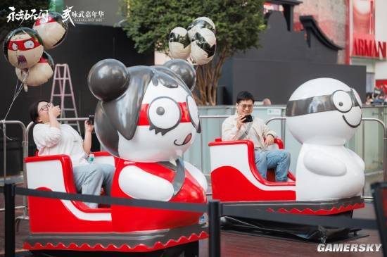 一位在现场工作的老师告诉我,能体验趣味编发等项目的“劫味变装”区域里,有不少男生主动参与;旁边的“劫宝摇摇车”,也引得许多“大朋友”跃跃欲试……多数时候,大家多是不自觉地被现场氛围感染:不管是cos心仪的角色,还是玩梗搞怪,在这里的每一位玩家,都能毫无顾虑地用自己喜欢的方式展现自我、表达热爱。
