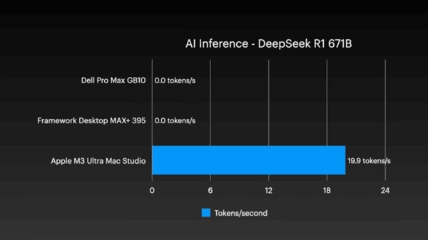 另外,在尝试运行DeepSeek R1 671B超大型模型的过程中,其他系统都没办法正常工作,不过Mac Studio集群依靠它1.5TB的统一内存,成功应对了这一挑战。