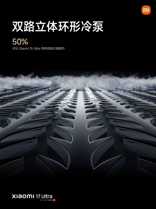 散热方面配备双路立体环形冷泵,相较于上一代小米15 Ultra,导热性能实现了50%的大幅提升;在人像模式下连拍150张时,拍摄速度比iPhone 17 Pro MAX快29秒,设备平均温度也低了2.2°C。