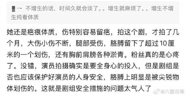 这个疤痕是张子枫在拍摄电视剧《我们生活在南京》时,被尖锐物品划伤造成的。由于她属于疤痕体质,所以恢复起来相对困难。