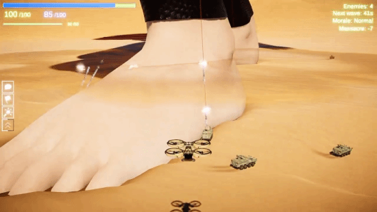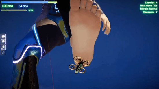 今日,推主@TinysoftGames分享了自己制作的一款性感女巨人题材游戏,游戏中女巨人的玉足践踏之下,装甲车转瞬间便化为齑粉,感兴趣的话一起来看看吧!