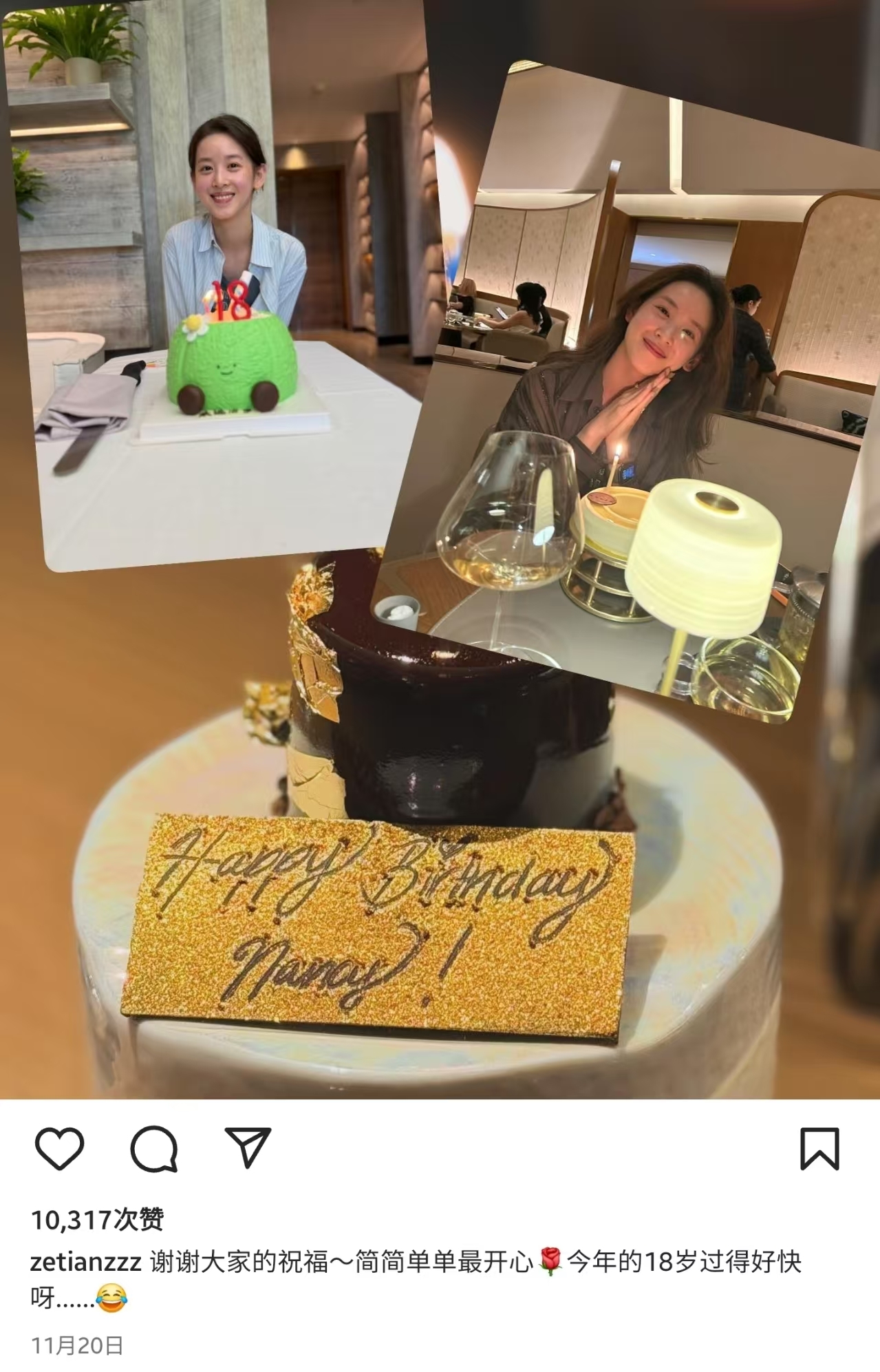 其实这并非近期两人首次在重要场合缺席,上个月章泽天过32岁生日时,她还在社交平台分享了素颜庆生照。照片里她穿着宽松针织衫,头发随意披散,皮肤细腻红润,状态依旧在线。她还特意选了个插着“18”号蜡烛的可爱蛋糕,配文调侃“今年的18岁过得好快”,语气俏皮又透着温馨。