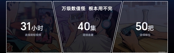 根据荣耀发布会披露的数据,荣耀WIN能够连续观看31小时短剧、连续追番40集,或是连续进行50把排位赛。