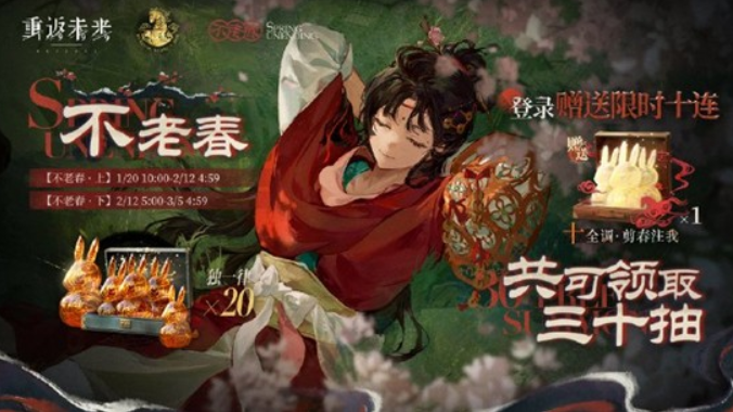 【不老春】签到活动分为上下两篇,参与后总共能获得独一律×20。