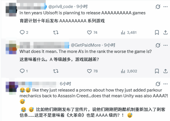 截至目前,育碧仍未针对“AAAA游戏”的具体定义以及玩家社区围绕这一话题展开的相关讨论给出官方层面的回应。