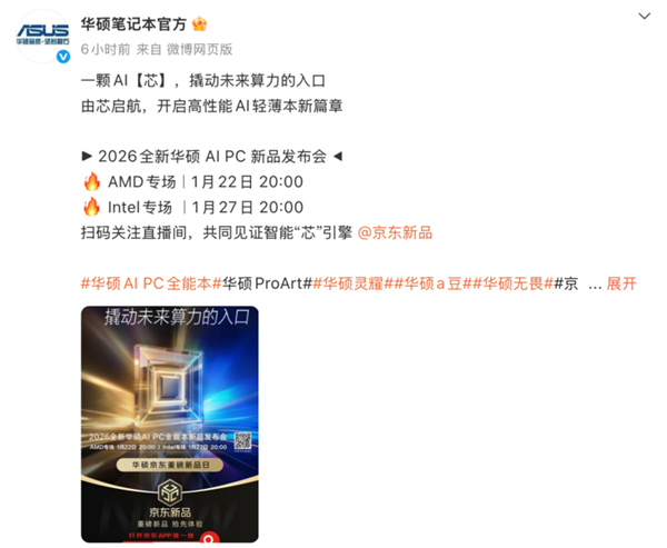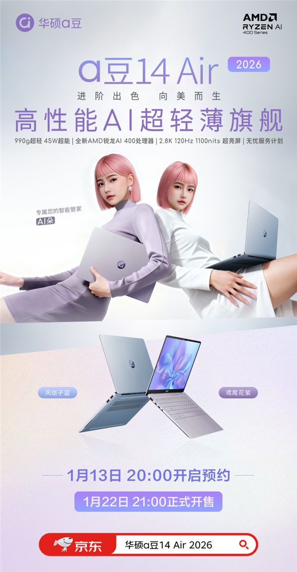 华硕轻薄本推出的四款2026锐龙AI轻薄本,均延续了各系列的核心定位,同时针对不同用户群体的使用痛点进行精准升级。目前,这四款全新机型已在华硕官网正式开启线上预约,更多产品细节及最终售价将于后续1月22日20:00即将开启的新品发布会上再做披露。