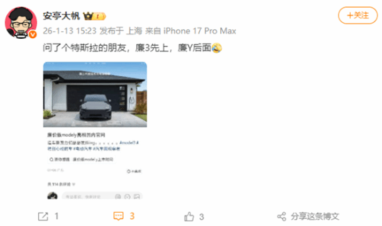 有业内人士向特斯拉方面咨询后了解到,除了低价版Model Y外,低价版Model 3也将在国内上市销售,并且上市顺序是先推出Model 3,之后再推出Model Y。