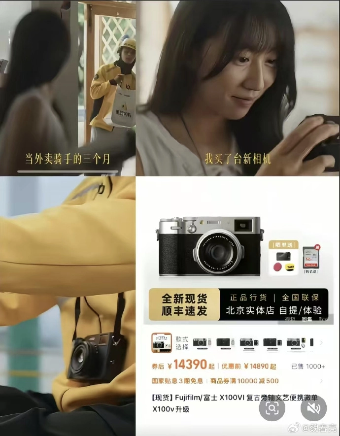 更有人翻出美团去年那条翻车的短片做对比,外卖女生用三个月工资买了台1.5万的相机,一边送外卖一边拍照欣赏风景。