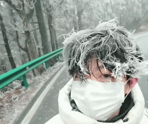 近日,受持续严寒天气影响,衡山出现大面积冰冻,呈现出独特的“冰河世纪”景观。放眼望去,栏杆、车辆等都被冰层覆盖,甚至有游客在登山途中被冻得发丝结冰。