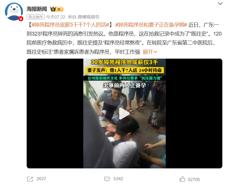 这也让小雷联想到前几天,那位周末工作猝死的32岁程序员。