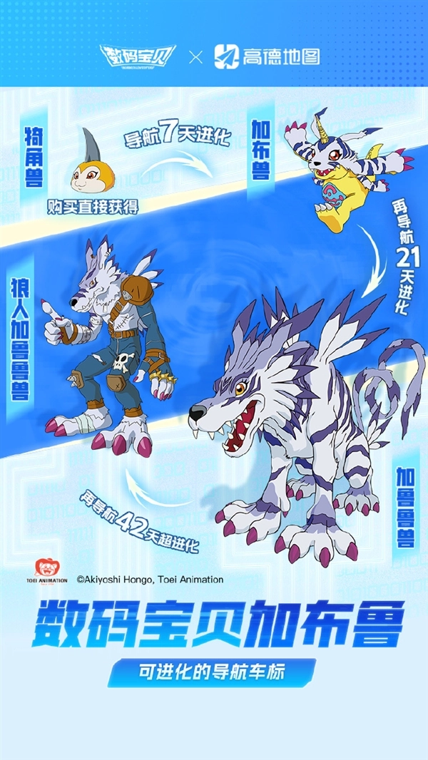 作为IP联动领域的熟面孔,高德地图之前就推出过不少动漫、游戏主题的联动内容,这次和《数码宝贝》联手,借助能进化的车标这一创新设计,让用户粘性得到了进一步增强。