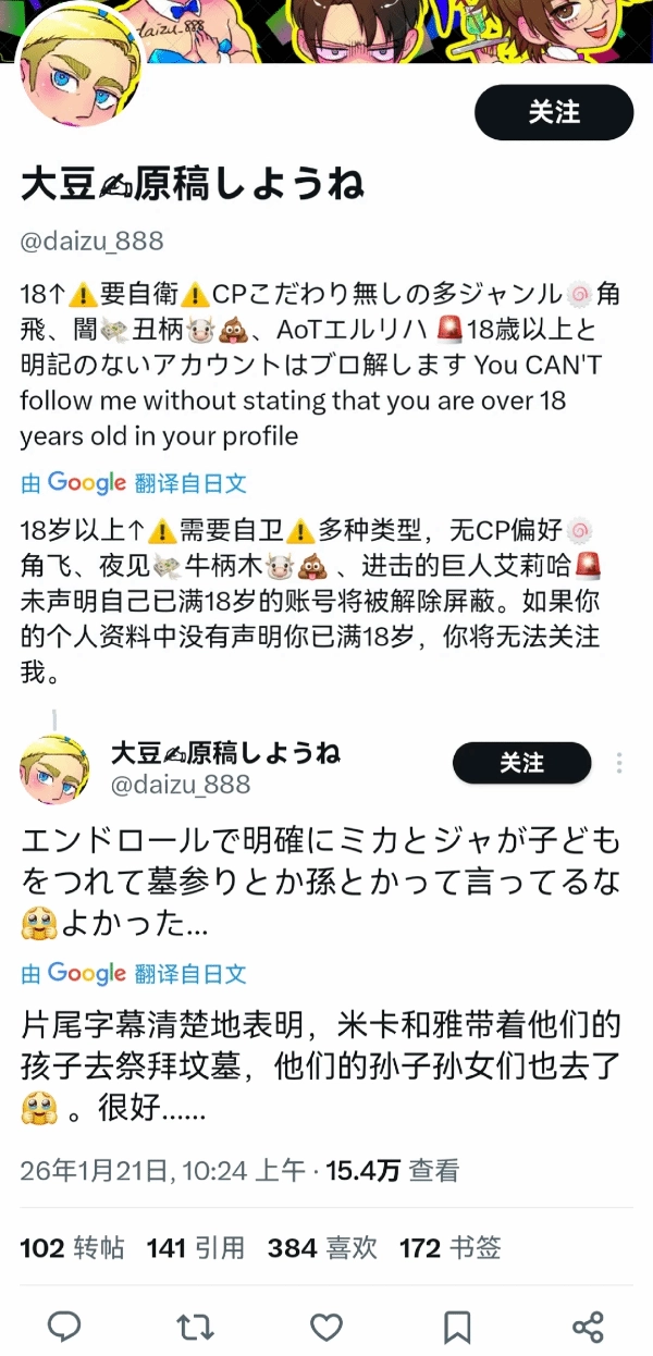 26年1月12日上午,推主“大豆原稿しようね@daizu 888”在X平台发布的一条推文,随后引发了不小的争议与讨论。