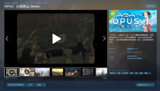 由SIGONO打造的摄影主题冒险游戏《OPUS:心相吾山》已在Steam商店页面上线,计划于今年3月正式推出。该游戏提供试玩Demo,目前在Steam平台收获了特别好评,感兴趣的玩家不妨前往体验一番!