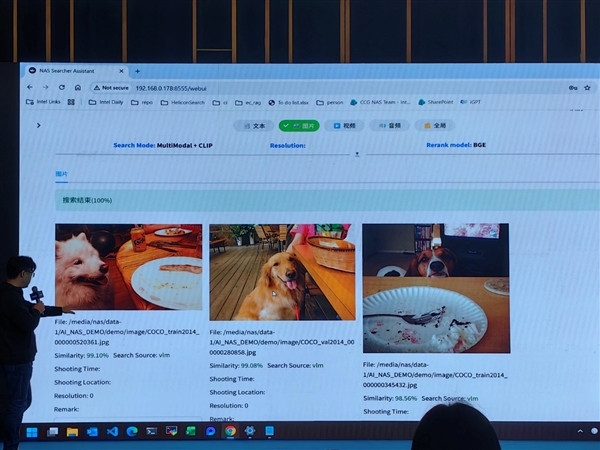 借助AI NAS,我们能够依据各类关键词,乃至自然语言,精准查找所需的照片与视频,哪怕是像“狗子在桌子左边”“一朵花和三只瓢虫”“鲜花正在凋谢”这类复杂的关键词也不在话下,最终结果还会按照相关度进行排序展示。