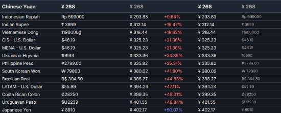 《噬血代码2》定档2026年1月30日发售,现已开启预购!Steam国区价格公布:标准版268元、豪华版398元、终极版468元。特别值得关注的是,国区售价为全球最低,价格第二低的印度尼西亚区则为293.8元。