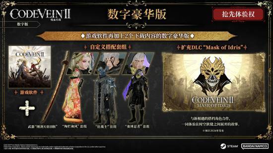 豪华版包含游戏本体,此外还提供自定义搭配套组以及扩充DLC“Mask of Idris”(该DLC预计于2026年夏季推出)。