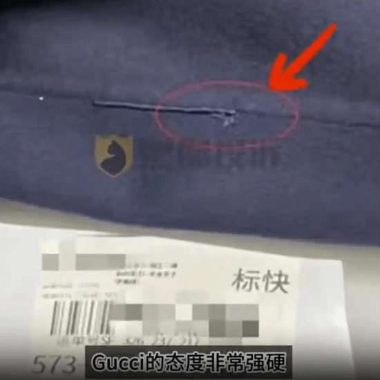Gucci旗舰店客服表示,经过检查,腰部的一根线存在“脱线损坏”情况,该状况不符合退货标准。