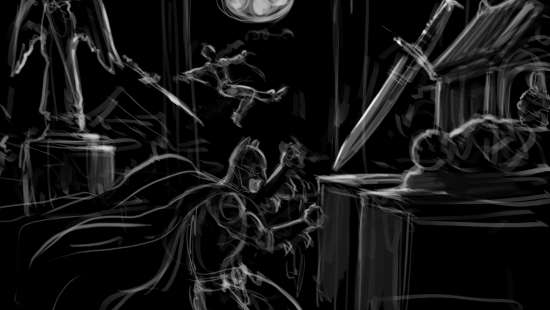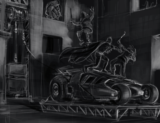 此外,这位网友还公开了这款游戏的众多场景草图,其中涵盖蝙蝠侠和反派的战斗画面、“小丑”在监狱里狂笑的模样,还有酷炫十足的蝙蝠车等内容。
