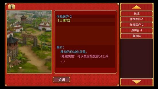 建好【陵寝】之后解锁。打仗时双方都是刀枪与血肉的交锋,这个建筑能让你在战后恢复部分士兵。作战医庐的续航效果很不错,它可以增加一个兵团的作战次数,提升打仗的效率,到了后期是个相当实用的建筑。