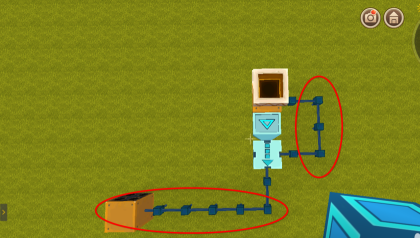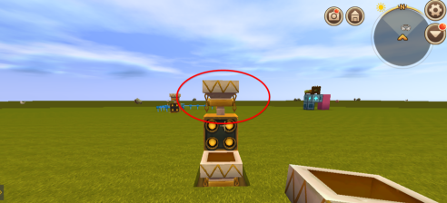 然后在漏斗旁边往上一格的位置摆放发射器,具体的放置方式请参考图示。