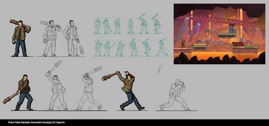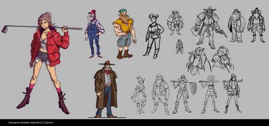 从概念图能够看出,《卡普空高尔夫》打算纳入工作室旗下众多IP的角色,像洛克人、《逆转裁判》里的成步堂龙一、《鬼泣》系列还有《丧尸围城》系列都在其中。由于卡普空温哥华那时候刚结束《丧尸围城4》的开发工作,所以图里出现该作颇具争议的弗兰克形象也在情理之中。