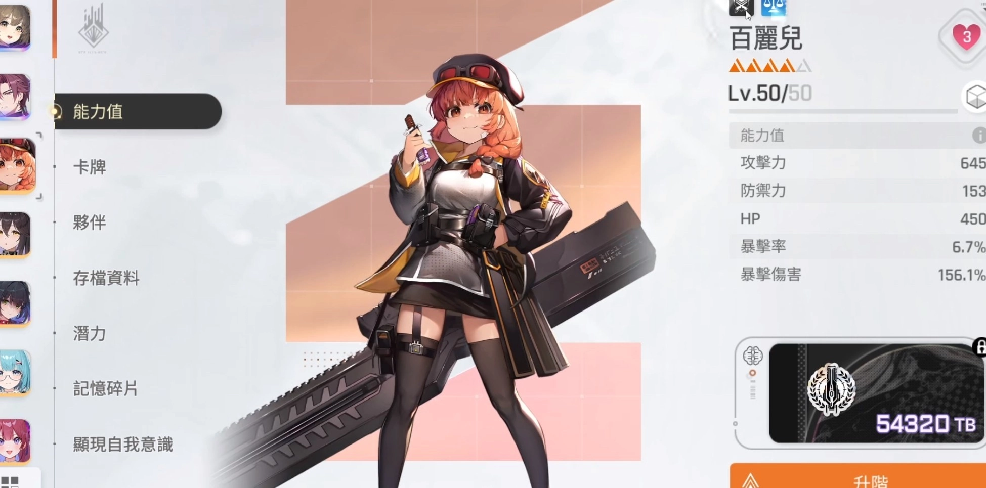 百丽儿在游戏里是个能力出众的角色,既具备敏锐的判断力,年少时就已晋升为指挥官。在团队中,她通常前期默默为队友叠加增益效果,到了后期则能强势爆发,凭借出色的保留机制与预留体系,能够打出高额的爆发伤害。并且随着等级提升,她还能解锁暴击伤害加成、独特卡牌伤害提升等潜能;高等级的潜能更可带来暴击率增加与技能伤害提升的效果。
