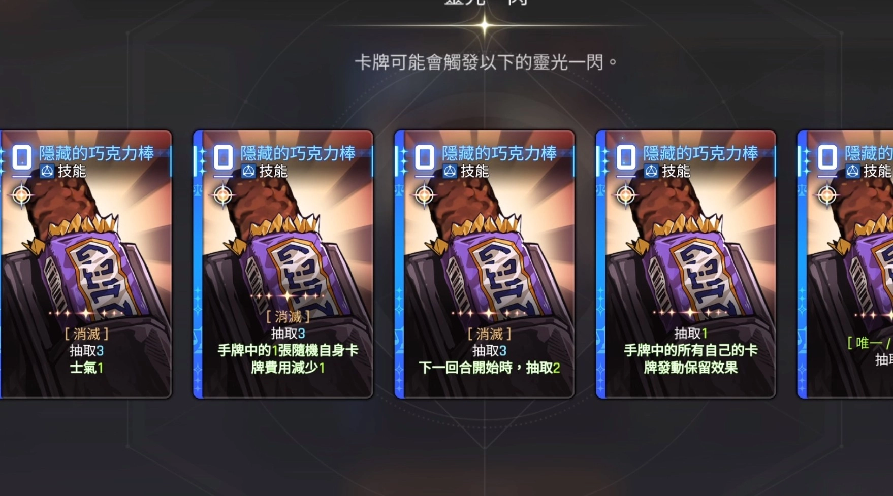 技能3隐藏的巧克力棒,无需消耗行动点,技能类型属于消灭,其效果为能够抽取3张卡牌。