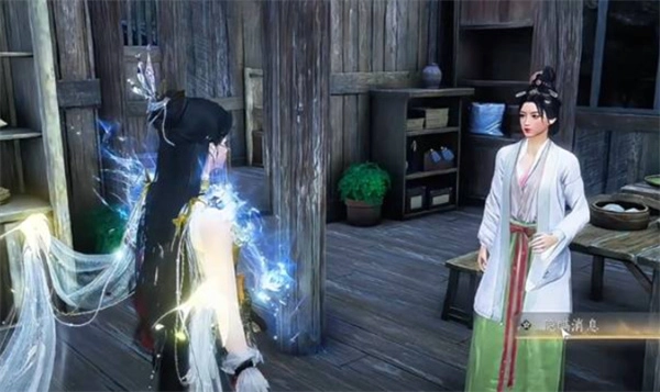 7、前往「易墨坊界碑」,借助绳索攀爬到房顶,找到摆放木人偶的店铺,暗中偷听NPC成欢的对话,运用奇术取得密信