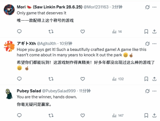我们实在难以用言语来表达,能和今年这么多出色的游戏一同入选,我们心中是何等感激。
