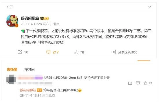 快科技11月4日消息,博主数码闲聊站透露,高通骁龙8 Elite Gen6(以下简称骁龙8E6)系列包含标准版与Pro版两个版本,二者均采用台积电N2P工艺(2nm)打造,不过两款机型的GPU规格存在差异,预计仅Pro版会支持LPDDR6内存。