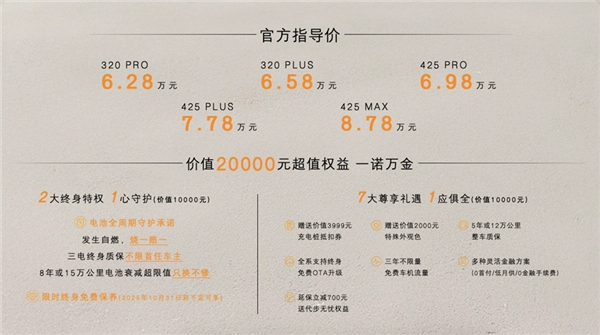 整体而言,极狐T1最让我印象深刻的点在于其超高的性价比,6.28万元的定价,在空间表现、配置水平、续航能力以及整车质感等维度,都展现出了领先于同级别车型的产品实力。对比当下市场上热度较高的吉利星愿、比亚迪海豚等竞品,极狐T1凭借后发优势形成了显著的竞争力。而单月大额订单突破3.5万台、上市不足一个月交付量便超过1万辆的成绩,也充分印证了消费者用实际行动做出的选择——他们确实精准识别到了这款车的价值。