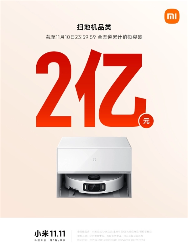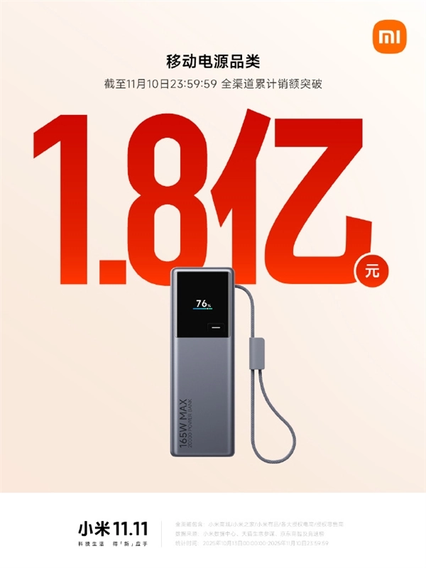 据了解,全渠道涵盖小米商城、小米之家、小米有品以及各大授权电商等平台,统计时段设定为2025年10月13日00:00:00到2025年11月10日23:59:59。