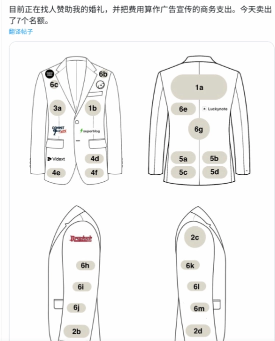 尽管这个想法一开始被大家当作荒诞的玩笑,但他很快就搭建好了网站,把西装划分成多个广告位并且标明了具体价格。要保证每个公司的名称都清晰醒目地呈现在西装上,同时还得契合婚礼的场合,西装本身也要做得美观得体,在时间如此紧张的情况下,这无疑是一项不小的挑战。