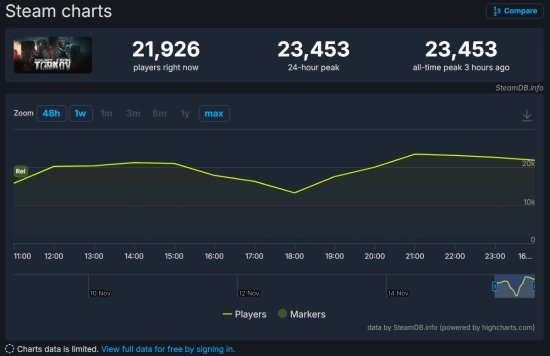同时,根据数据统计网站SteamDB的信息,Steam玩家的最高在线人数达到了23453人。