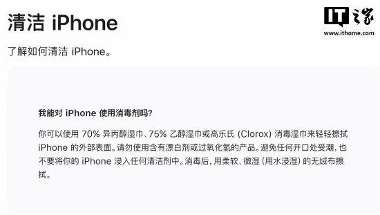 苹果公司始终建议用户,不要用含有强效化学成分的刺激性清洁剂擦拭iPhone,这类化学物质会导致漆面涂层分解。