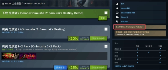 Steam商店页面显示,卡普空为这款游戏同步添加了Enigma加密机制。不过外媒PlayGround指出,根据过往经验,这种加密的难度较低,通常会在24小时内被攻克。