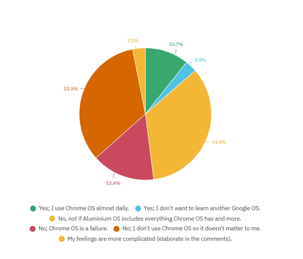 知名科技媒体android authority针对ChromeOS的“终结”开展了一次用户调查,结果表明,只有17%的用户会对ChromeOS心怀眷恋。