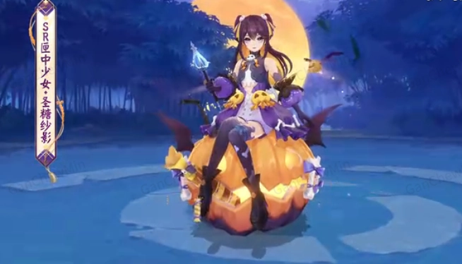 镂空的南瓜灯被点亮,诡谲的笑脸在灯上悄然浮现,银色的圆月从枯树后探出头来,给少女的礼服罩上一层幽白又神秘的辉光,她就像夜色里的精灵,带着玩家踏入一个满是魔法与惊喜的世界。
