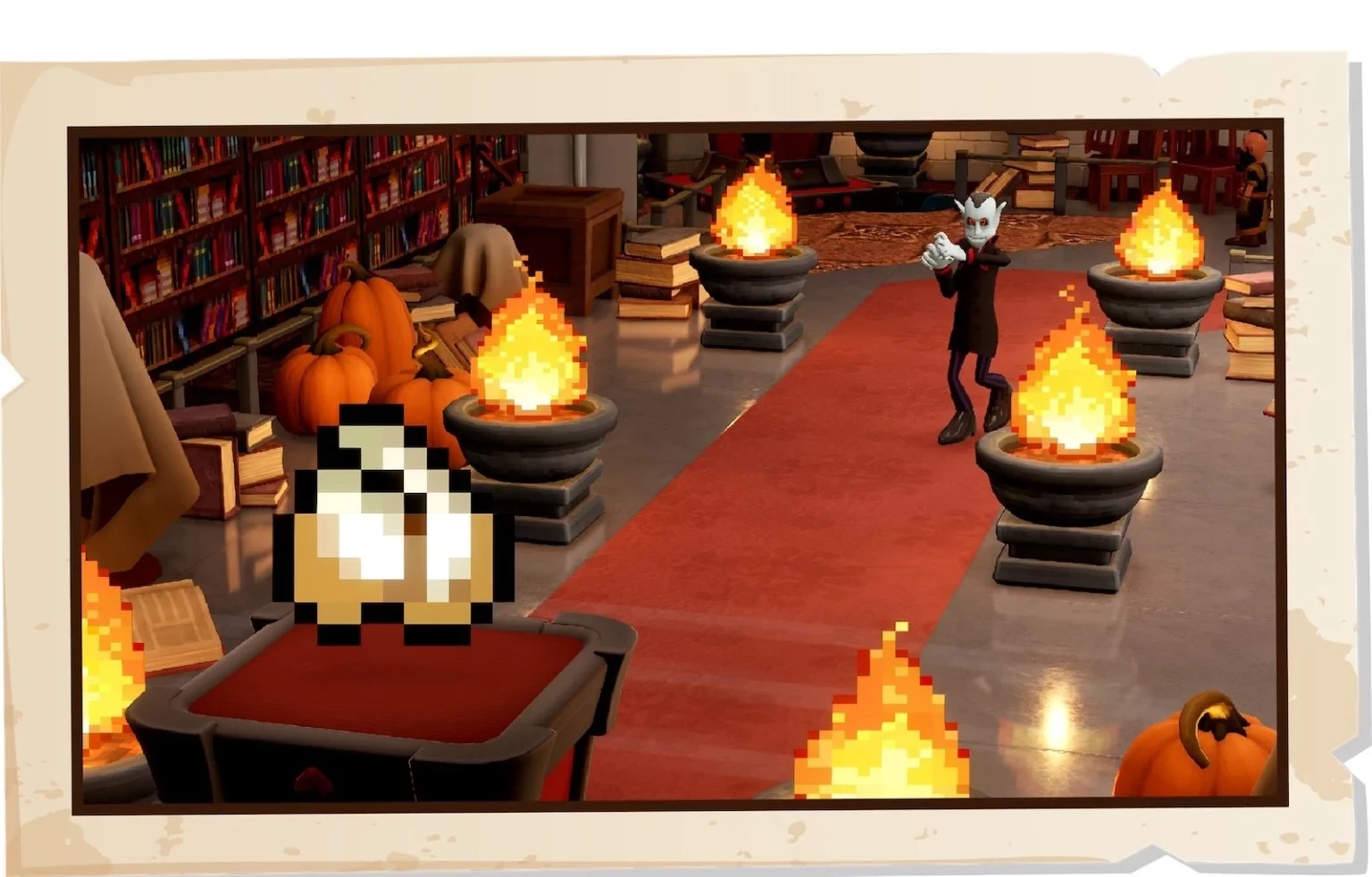 在联动活动里,《双点博物馆》将加入《吸血鬼幸存者》里的经典场景——狂乱森林、象眼图书馆与马格纳礼拜堂作为全新调查地点,同时还能收集10种新展示品,以及海量联动主题的壁纸、地板等各类道具,大家敬请期待!