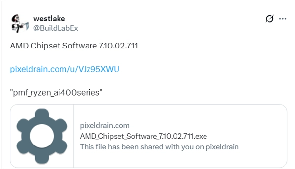 @BuildLabEx发现,AMD芯片组驱动程序v7.10.02.711中首次出现了锐龙AI 400系列的标识。尽管这款驱动目前还未正式公开,但它的出现无疑印证了此前外界关于锐龙AI 400系列的诸多传闻。