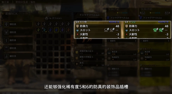 此外,更新之后,玩家还能够对稀有度等级为5级和6级的防具上的装饰品插槽进行强化!
